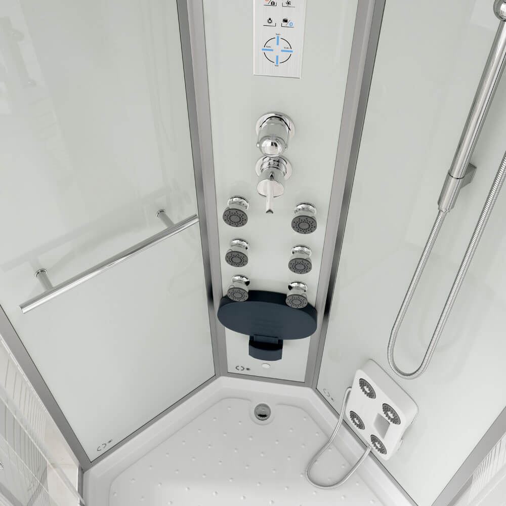BÍLÁ PERLA Sprchový kout s vodopádem a masáží zad