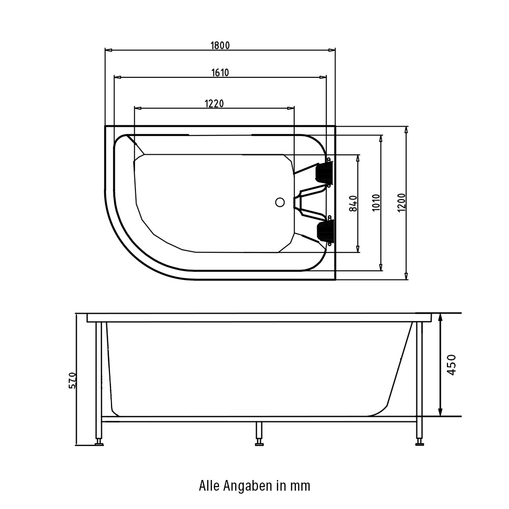 Vnitřní rozměry: 155 x 100 x 38 cm. (38 cm výška po ochranu proti přetečení)