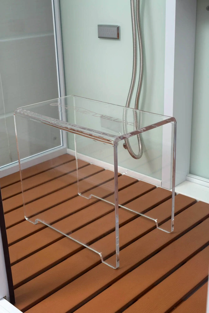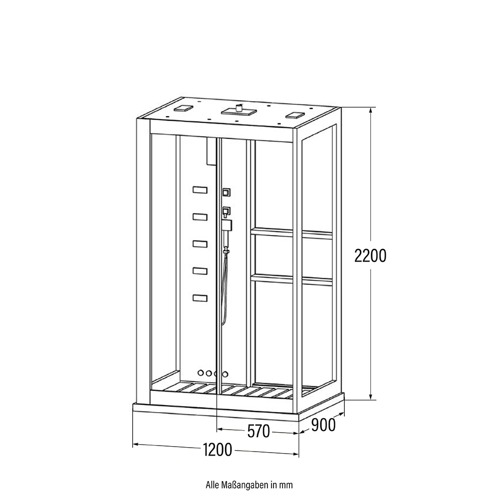Zbavte se stresu po náročném pracovním dni v parní sauně (až 40 °C), která vás zaručeně zpotí, nebo jednoduše začněte den královskou sprchou každé ráno. Naše „Luxory Series“ má velkou tropickou sprchu ve stropě, kde voda stéká ze stropu jako vlažný tropický déšť. Uvolňující masáž zad s 5 masážními tryskami při poslechu oblíbené rozhlasové stanice vám dá zapomenout na vše ostatní. Samozřejmě nechybí ani stylová ruční sprcha. Design jednotlivých součástí je nekompromisně sladěný, například s pravoúhlými armaturami, které odpovídají tvaru kabiny. K dalším vizuálním zajímavostem patří velká zrcadlová plocha a elegantní podlaha s dřevěným vzhledem. Barevná světelná terapie integrovaná do stropu zvyšuje faktor relaxace. Integrovaný počítačový displej umožňuje plynulé nastavení hlasitosti a výběr rozhlasové stanice. Kombinace 5 mm silného čirého jednovrstvého bezpečnostního skla a stěn vyztužených skelnými vlákny, stejně jako hliníková rámová konstrukce, zaručují trvale vysoký standard bezpečnosti a kvality. Dveře se zavírají naprosto přesně a vodotěsně díky integrované magnetické liště. Díky výškově nastavitelným nožičkám lze sprchovou vaničku přizpůsobit téměř každému povrchu a snadno ji instalovat.