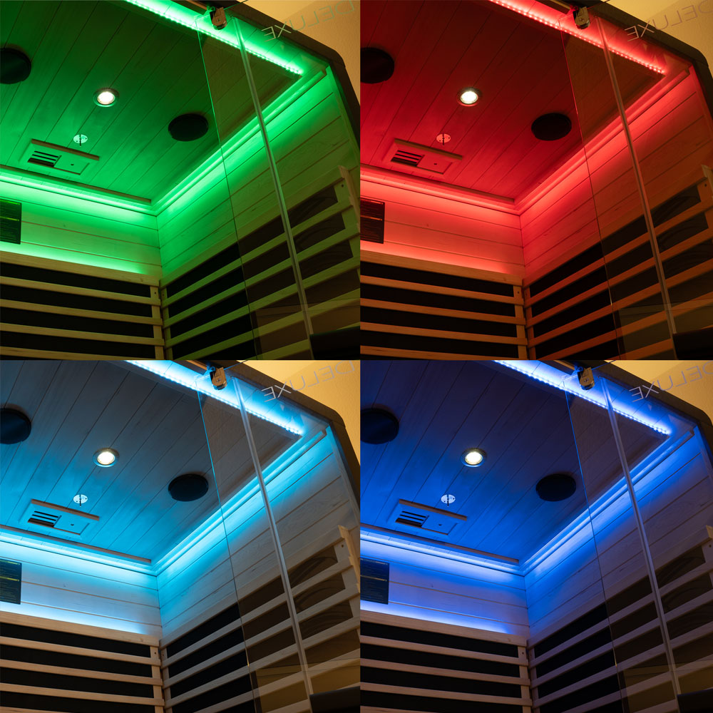 Ovládací panel NERO je umístěn uvnitř kabiny. Tímto způsobem můžete provést nastavení jednoduše a pohodlně. K naprostým relaxačním zážitkům by samozřejmě neměla chybět vaše oblíbená hudba. Integrovaný zvukový balíček vám umožní poslouchat vaši oblíbenou hudbu. Kromě Bluetooth, AUX a USB portu je zde také rádio. Ionizátor zajišťuje nejen příjemnou vůni, ale saunu zároveň dezinfikuje. Teploměr namontovaný uvnitř vám ukazuje teplotu kdykoli, když jste v sauně. Balíček osvětlení zdokonalí atmosféru. Montáž je velmi jednoduchá. Sauna se dá rychle postavit pomocí zacvakávacích prvků. 2 osoby stačí k tomu, aby saunu postavili za méně než hodinu. Užijte si zábavu s vaší novou infrasaunou NERO!