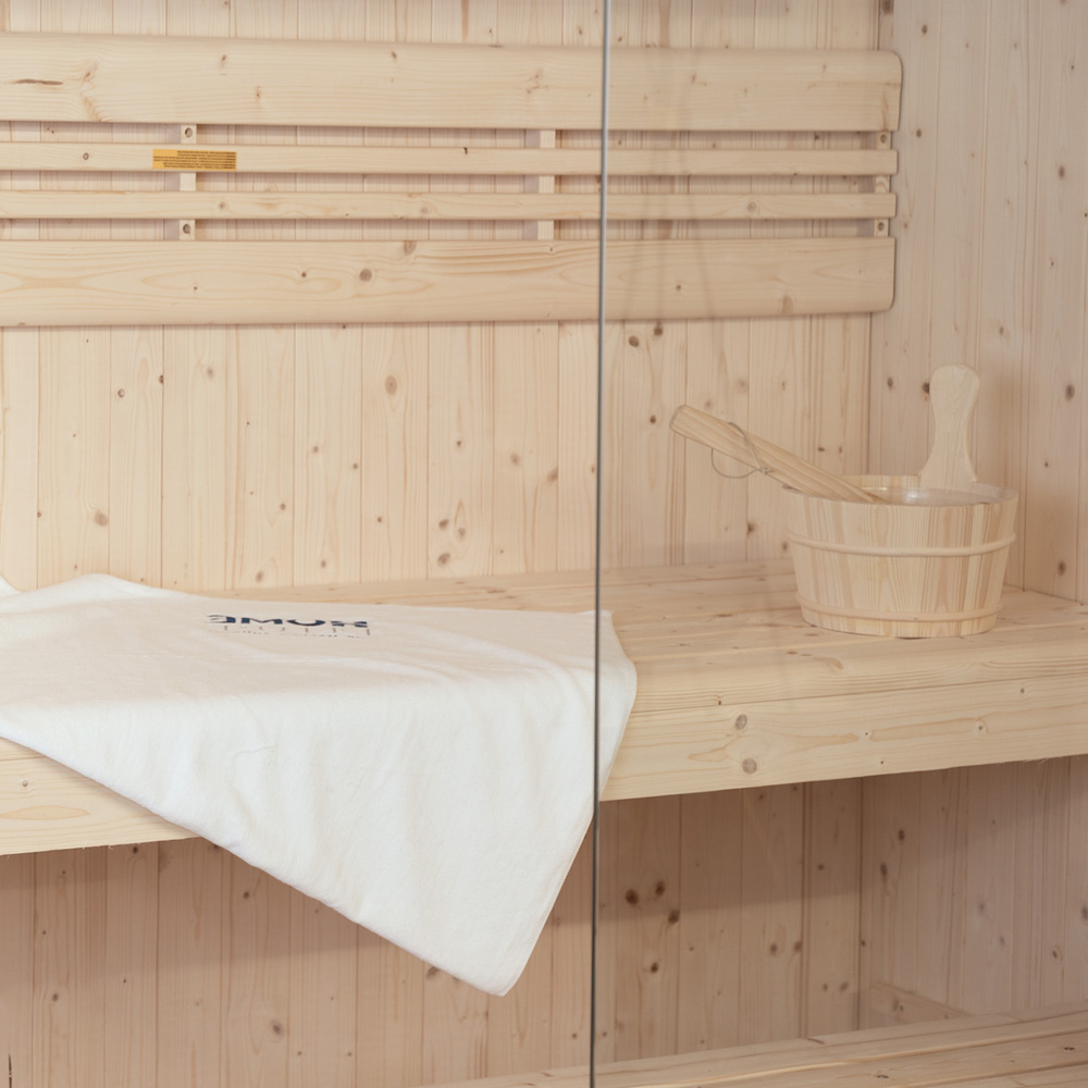 Vysoce kvalitní skleněná dvířka jsou vyrobena z bezpečnostního skla ESG o tloušťce 6 mm a robustních pantů. Topná tělesa infrakabiny vytvářejí suché, dlouhotrvající teplo. Proniká hluboko pod povrch pokožky a má řadu pozitivních účinků. Stimuluje se krevní oběh, uvolňují se svaly, spalují se kalorie, snižuje se stres a tělo i mysl si mohou odpočinout. Infrasauna má uvnitř 4 povrchová topná tělesa, která vyzařují infračervené paprsky a vytvářejí tak přesně příjemné teplo typické pro takovou kabinu. Inovativní karbonové reflektory tohoto modelu jsou umístěny na bocích, vzadu a v prostoru pro nohy. To vám poskytne dokonalý relaxační zážitek. Celkově má infrasauna NERO působivý výkon 2050 W.