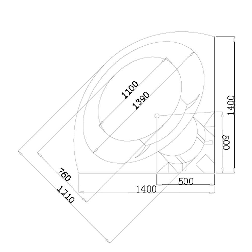 Rádius (od rohu k přednímu oblouku): 150 cm