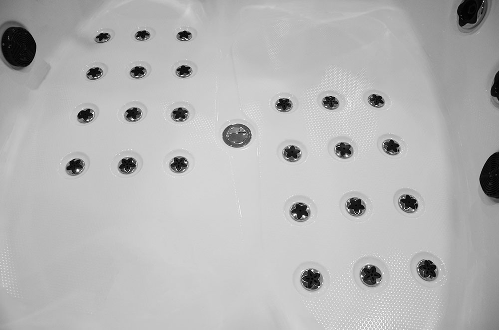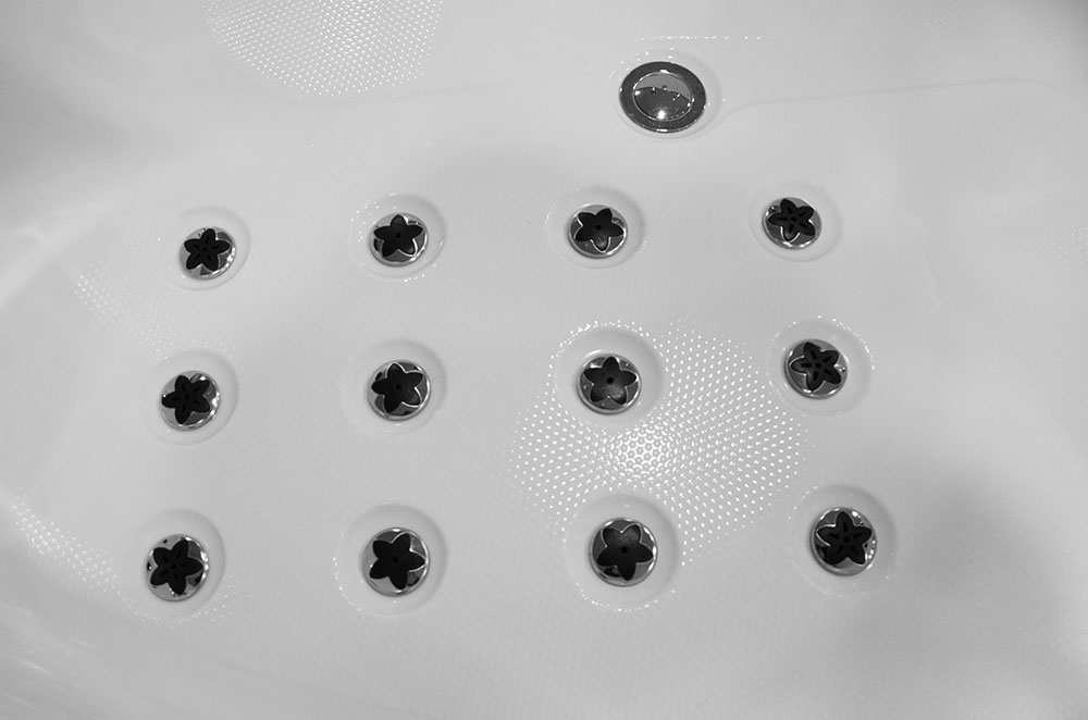 Trysky zapustené v akryle – vďaka tejto aplikácii ležanie vo vani neleží na tryskách (ako je tomu u väčšiny tohto typu vaní), ale na akryláte. Trysky sú umiestnené v jednej rovine s akrylovým povrchom, pri hydromasáži sa nebudú lepiť na telo, čo má za následok 100% spokojnosť s kúpeľom.