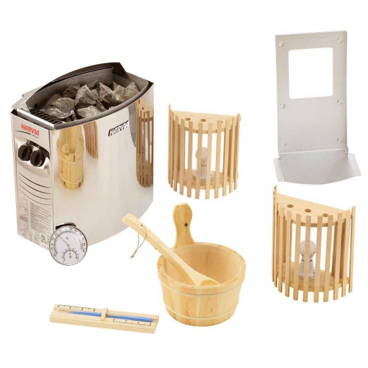 – výbava: saunová pecka, saunové kameny, saunové kbelík, naběračka, přesýpací hodiny, teploměr