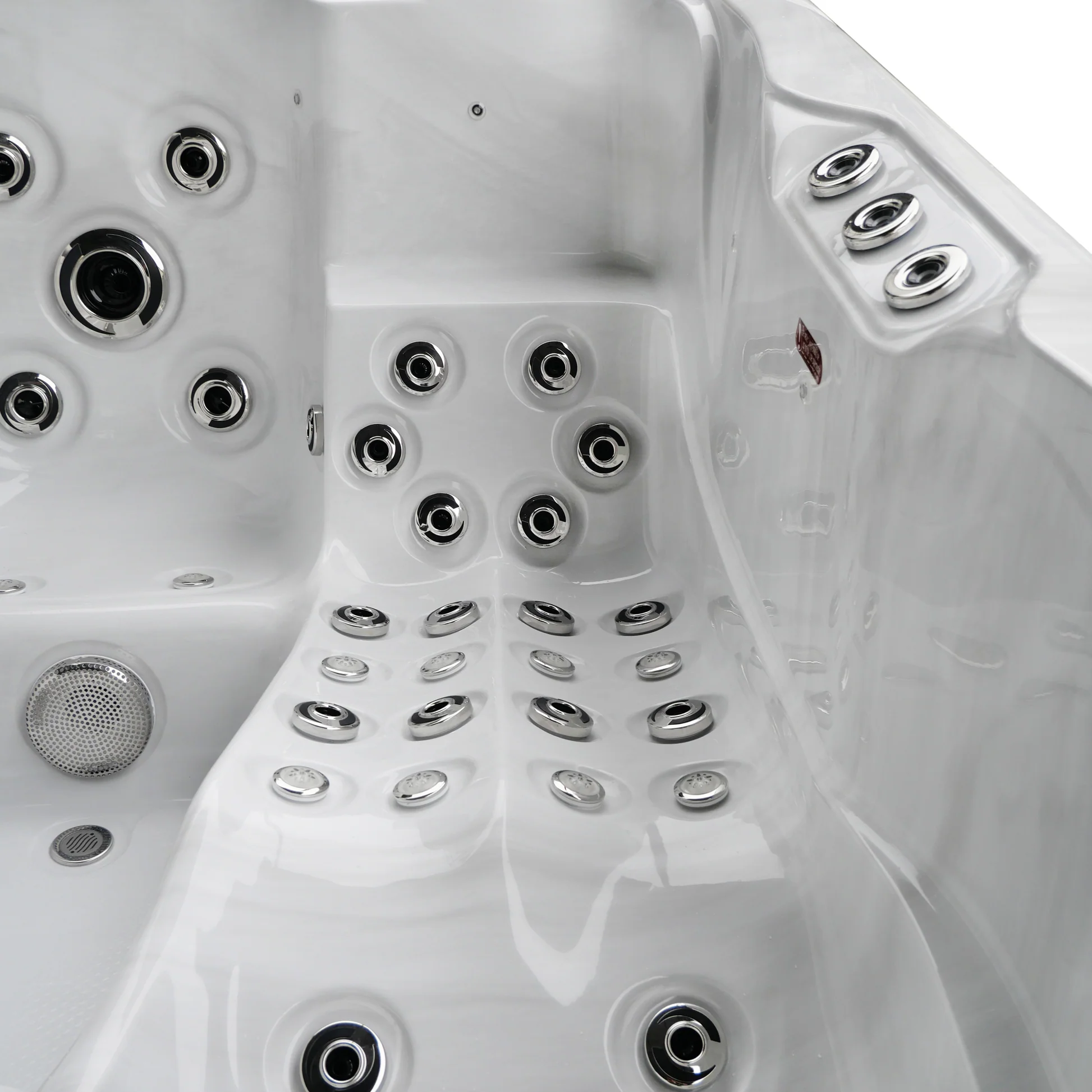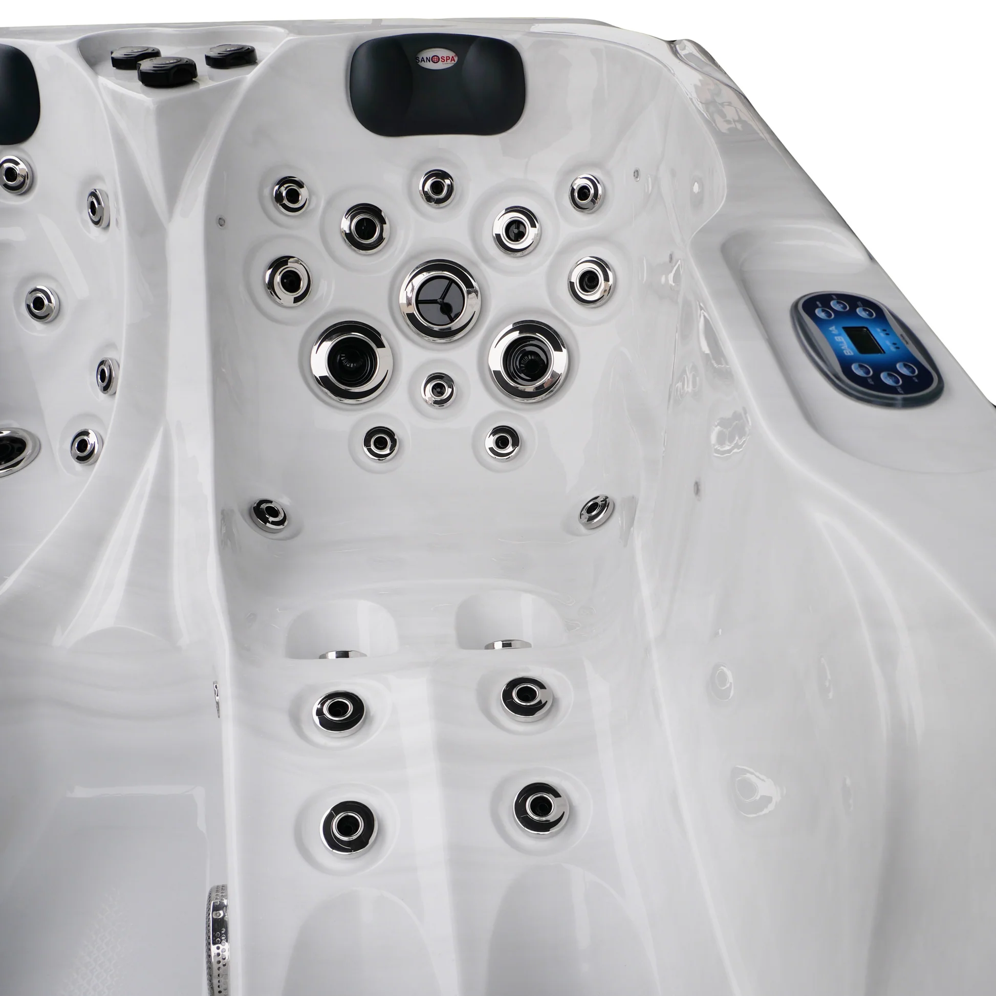 Už žádné sny o dokonalé relaxaci, stačí otevřít dveře do vlastního světa pohody. Venkovní vířivka MAURITSIUS v elegantní bílé mramorové barvě od Sanotechnik je stvořená pro ty, kteří hledají maximální komfort a špičkové technologie. Představte si, jak se necháte unášet silou 71 masážních trysek, které vám dopřejí dokonalou úlevu a revitalizaci, zatímco zabudované LED osvětlení a integrovaný audiosystém vytváří neopakovatelnou atmosféru.