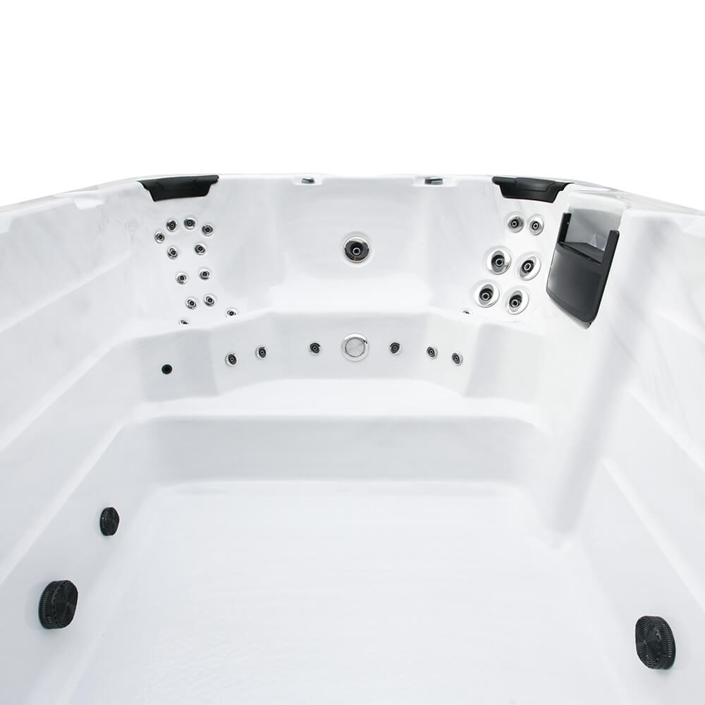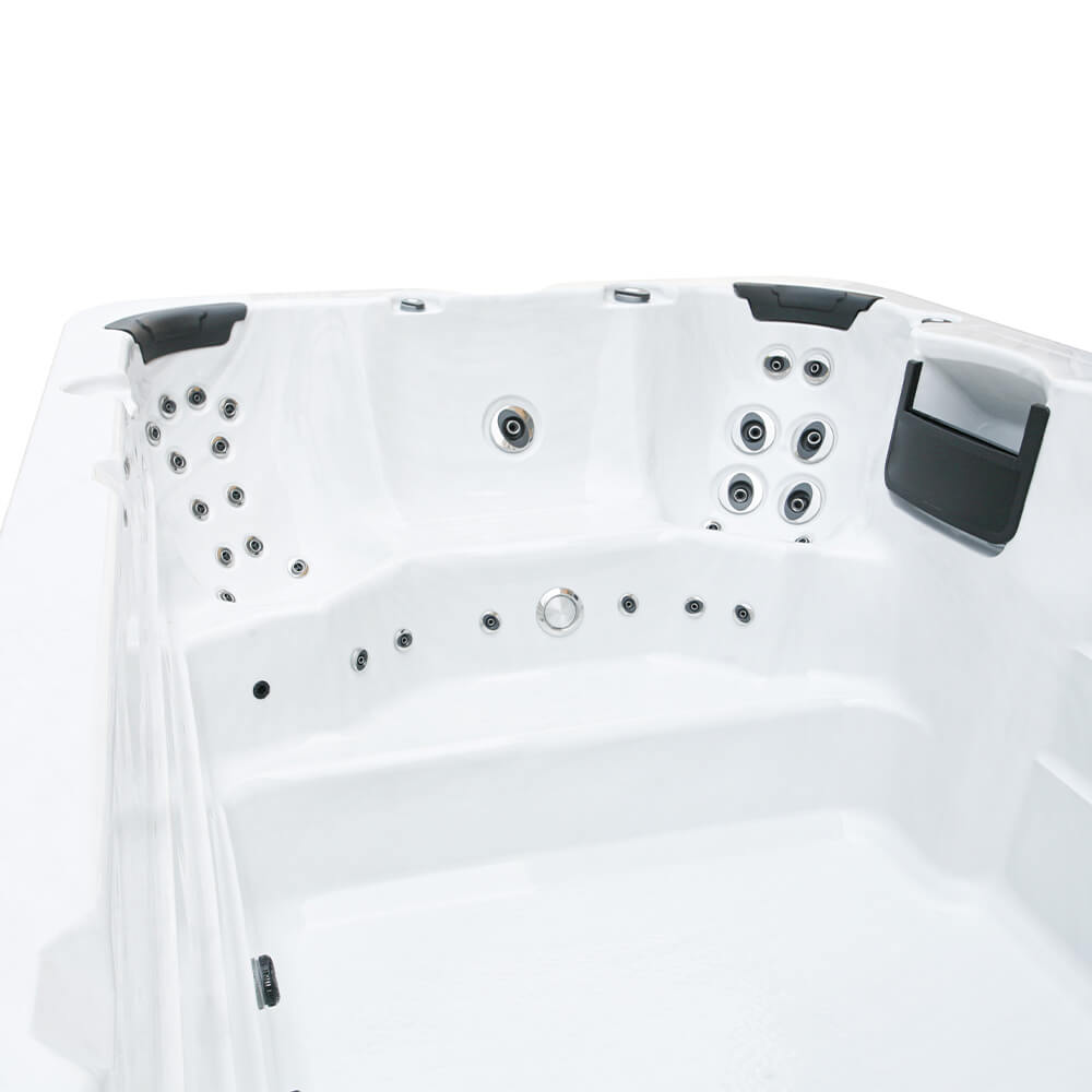 Vyberte si ze spousty možností a nakonfigurujte si vířivku tak, aby vyhovovala vašemu individuálnímu stylu. Zvolte si klasickou bílou nebo nadčasovou černou akrylátovou vanu a doplňte vzhled moderním šedým nebo teplým dřevěným PVC lemem. Přizpůsobte si vířivku výběrem hnědého nebo šedého krytu, který dokonale ladí s vaším okolím. Pro větší luxus si můžete přidat funkci Bluetooth, abyste si mohli vychutnat svoji oblíbenou hudbu a také podvodní LED osvětlení pro relaxační atmosféru. Maximalizujte energetickou účinnost s volitelnou dodatečnou tepelnou izolací a udržujte svou vířivku svěží a čistou díky funkci UV čištění.